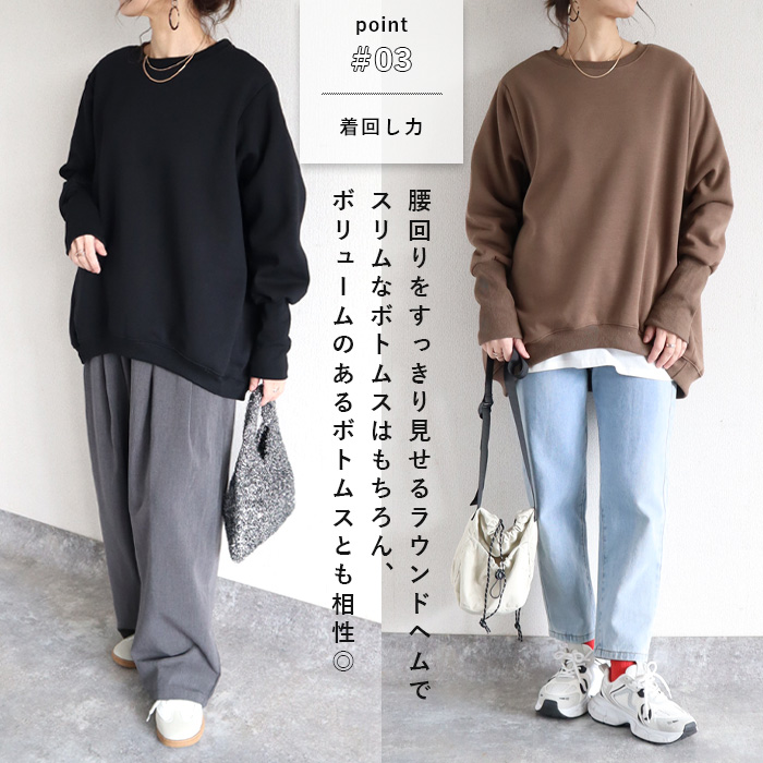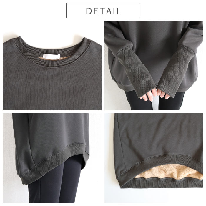 1673円 3点購入クーポンで! トップス レディース トレーナー スウェット 裏起毛 ボア 長袖 秋 冬 黒 おしゃれ かわいい リブ長 あったか [郵3]^t1040^