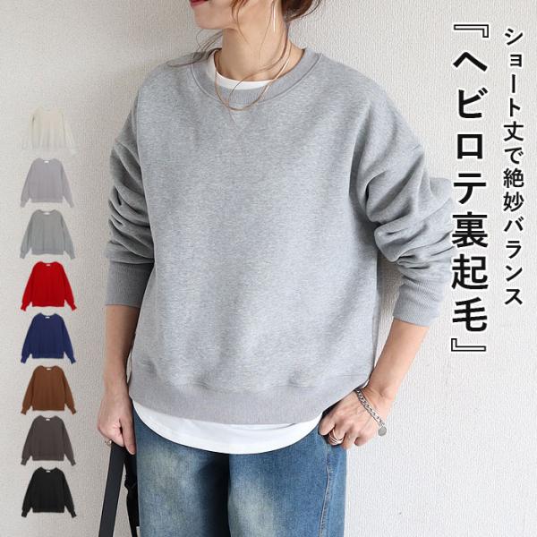 1743円 3点購入クーポンで! トップス レディース トレーナー 春 秋 冬 白 黒 おしゃれ 長袖 スウェット リブ あったか プルオーバー 裏起毛 [郵3]^t1121^