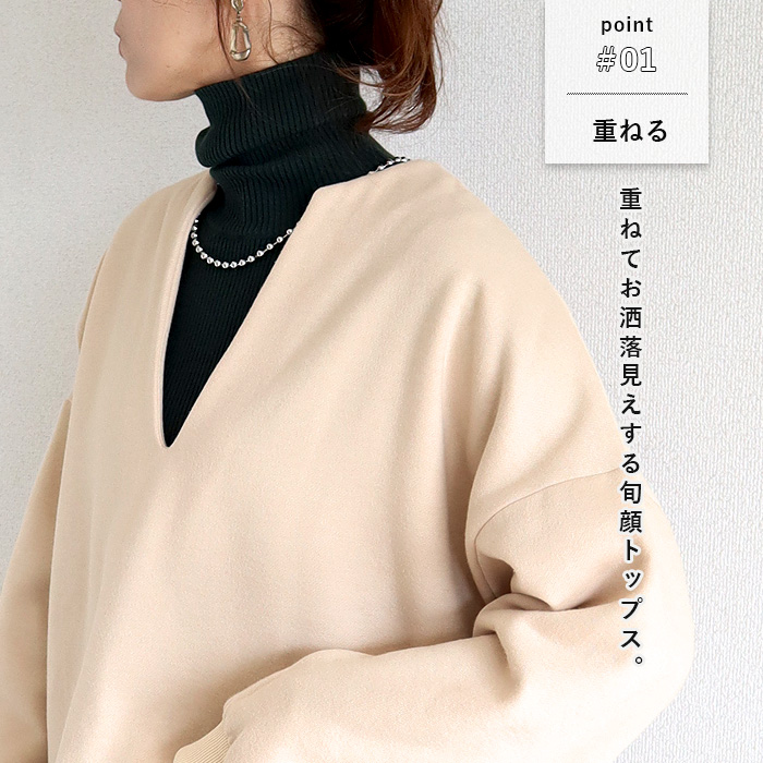 1533円 3点購入クーポンで! トップス レディース トレーナー スウェット 黒 春 秋 冬 おしゃれ 長袖 無地 コットン混 Vネック 裏起毛 40代 50代 [郵3]^t1131^