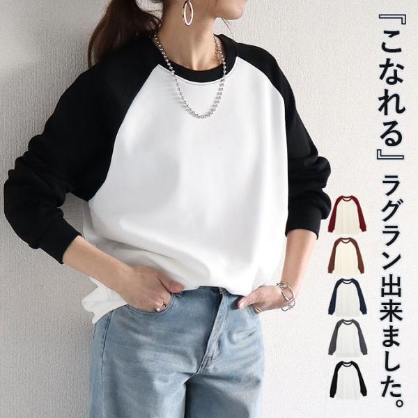 2093円 3点購入クーポンで! ラグラン トレーナー レディース トップス スウェット 長袖 春 秋 黒 白 カジュアル おしゃれ バイカラー 40代 50代 [郵3]^t1136^