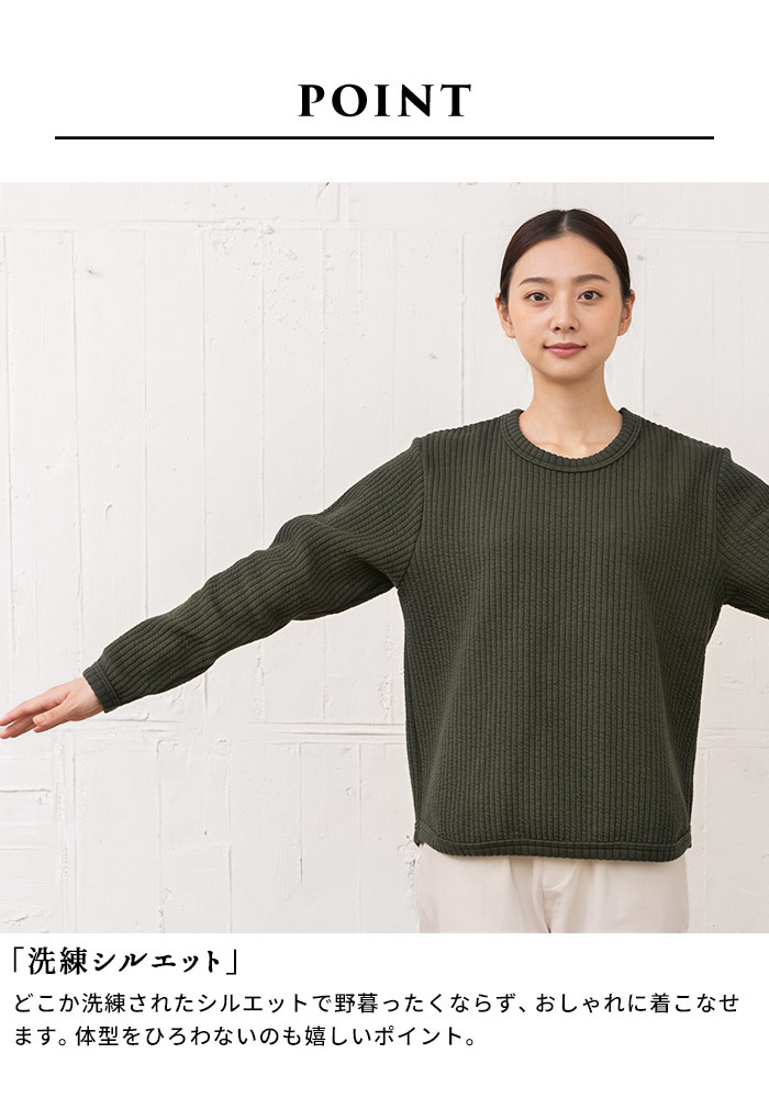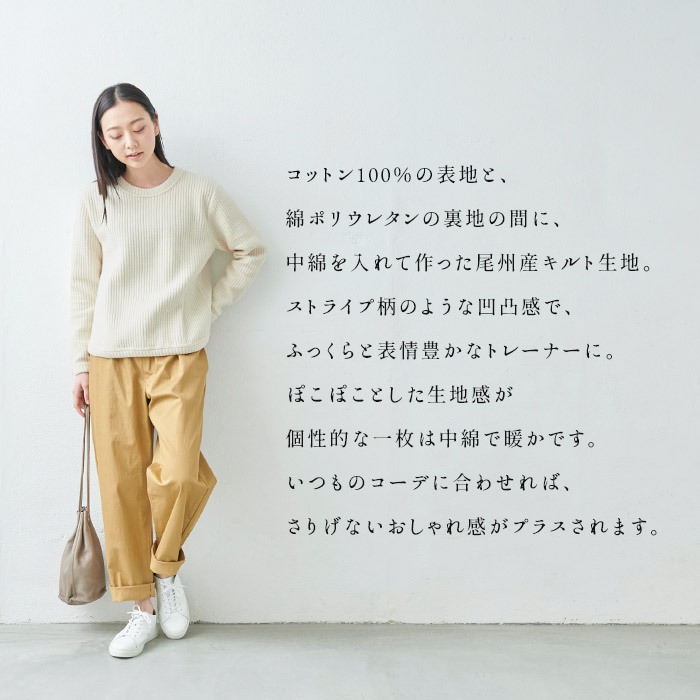 トレーナーレディース おしゃれ 50代 40代 ストライプキルト キルティング 日本製