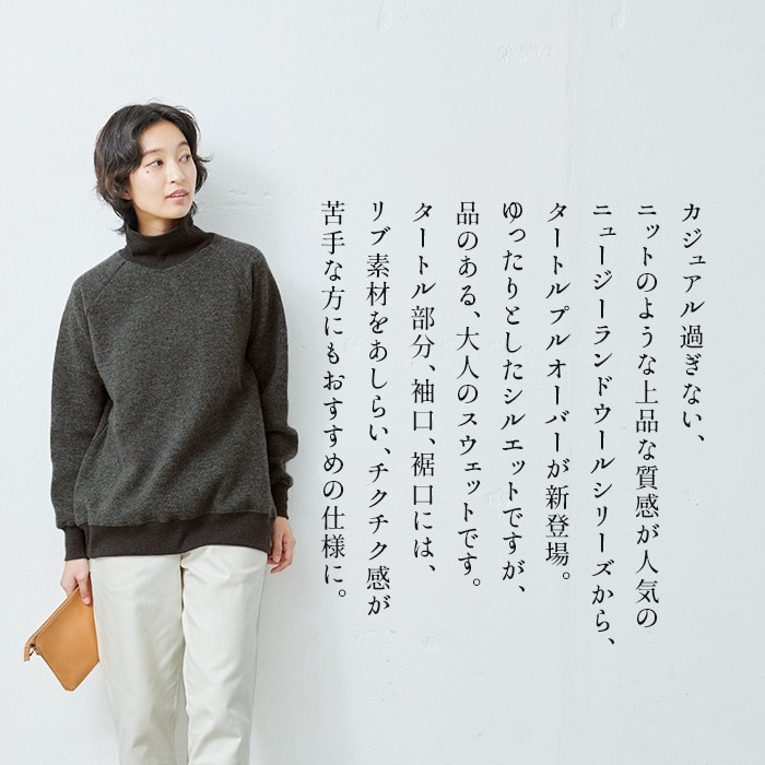 トレーナー レディース 長袖 スウェット 40代 50代 ニュージーランド ウール リブ使い タートル トレーナー 日本製