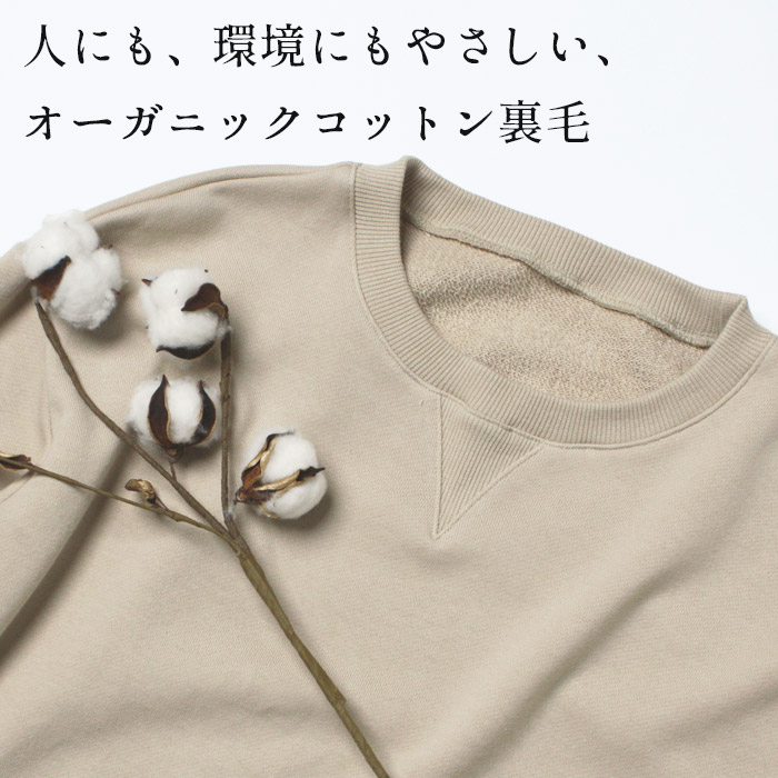 トレーナー レディース 長袖 スウェット 40代 50代 オーガニックコットン 裏毛トレーナー 日本製 無地