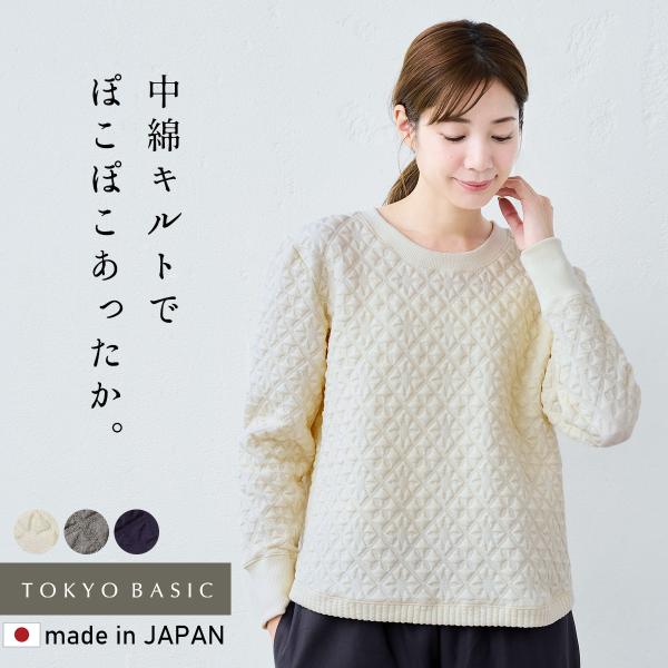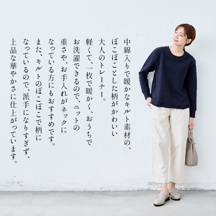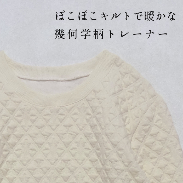 キルティング トレーナー 中綿 厚手 おしゃれ 40代 50代 尾州産 ストレッチ キルト 幾何学柄 リブ使いトレーナー 日本製