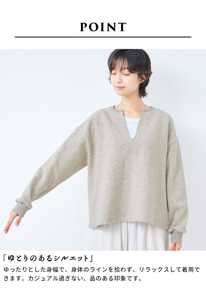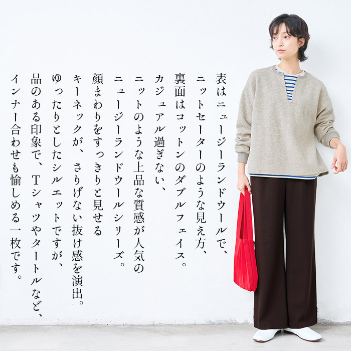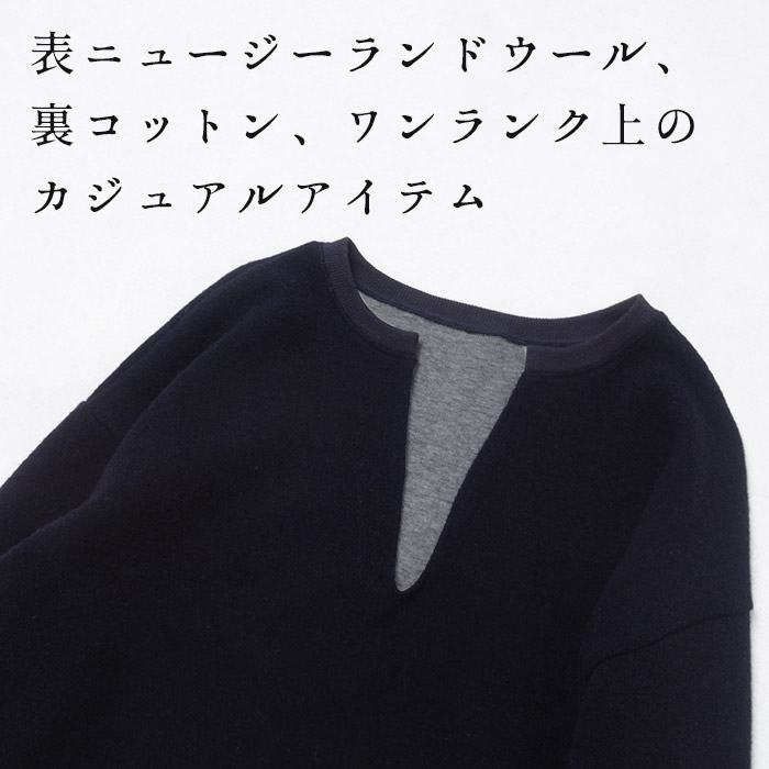 トレーナー レディース 長袖 スウェット ニュージーランドウールコットン キーネック プルオーバー 日本製 40代 50代