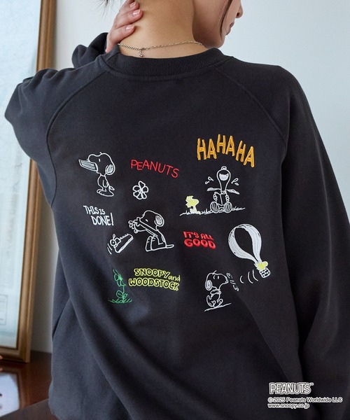 トレーナー スウェット 「PEANUTS SNOOPY」別注 ピーナッツ スヌーピー ヴィンテージライク 刺繍プリント オーバーサイズスウェット