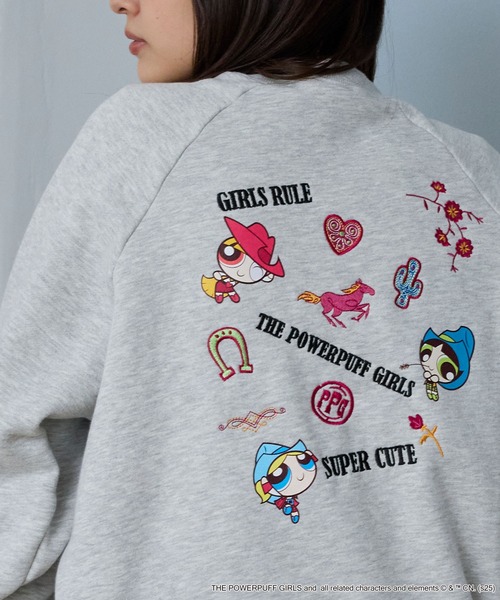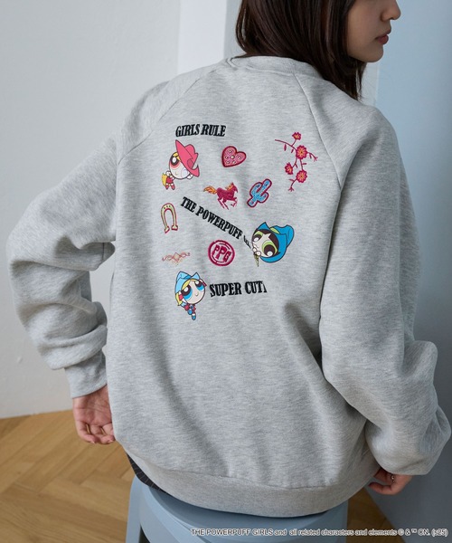 トレーナー スウェット 「THE POWERPUFF GIRLS」別注 パワーパフ ガールズ グラフィック刺繍 ラグラン スウェット