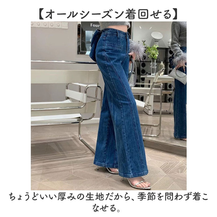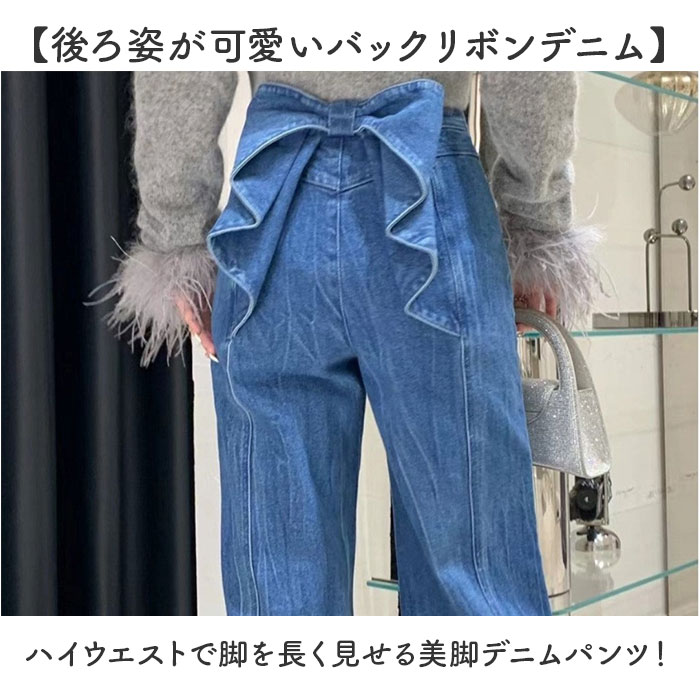 バックリボンデニムパンツ 通販 バックリボン デニム ジーンズ ジーパン ロングパンツ 美脚 パンツ 長ズボン ボトムス 春 夏 秋 冬 バックリボンデニムパンツ