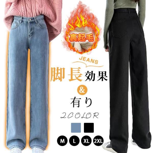 デニムパンツ レディース 裏起毛 ジーンズ ゆったり 厚手 裏起毛パンツ ストレート 保温 ジーパン 防寒 暖かい ワイドパンツ
