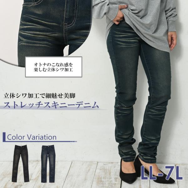 スキニーデニムパンツ 大きいサイズ レディース ストレッチデニム ボトムス LL 3L 4L 5L 6L 7L ap-series-dm 送料無料※沖縄/北海道対象外