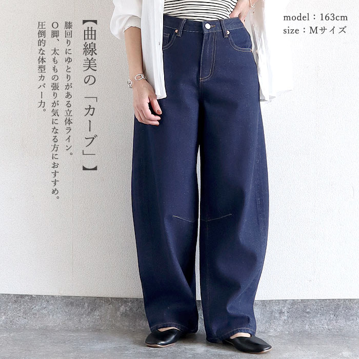 パンツ デニム バレルパンツ ワイドパンツ レディース 春 夏 秋 黒 おしゃれ かわいい カーブパンツ ジーンズ ジーパン [郵3]^b473n^
