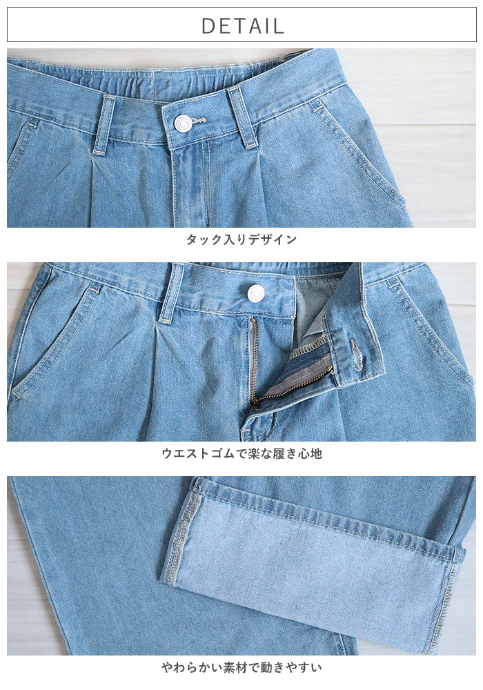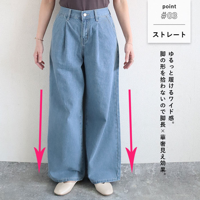 3141円 クーポンで! パンツ レディース デニムパンツ ストレートパンツ 春 夏 白 黒 おしゃれ Gパン 体型カバー 脚長 タック入り カジュアル[郵3]^b490^
