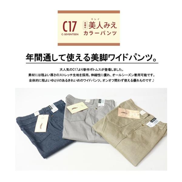 C17 レディース LACHIC ワイドパンツ ストレッチ C-SEVENTEEN C-17 シーセブンティーン 送料無料 CL005