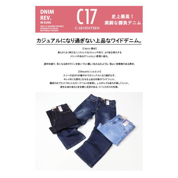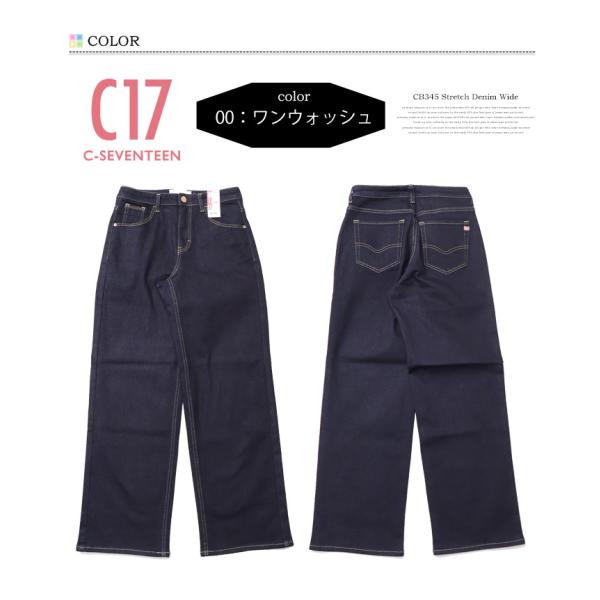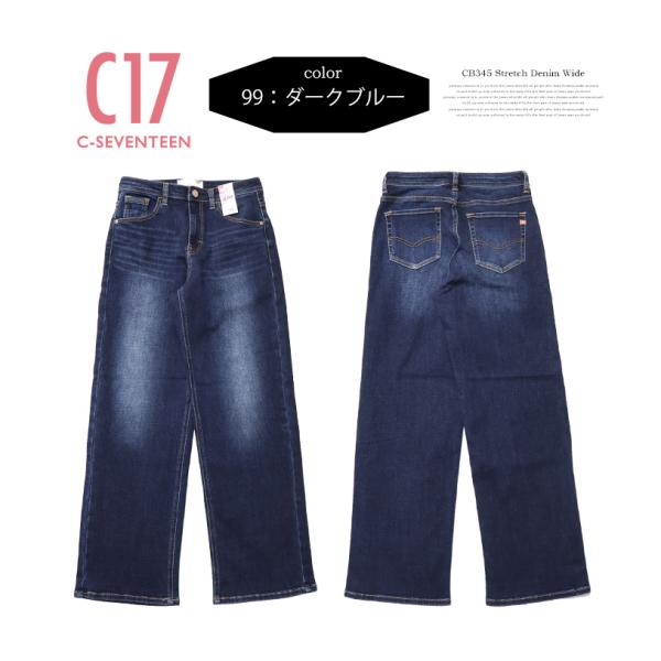 C17 C-SEVENTEEN CB345 ベーシック ワイド デニム ジーンズ ストレッチ シーセブンティーン 送料無料 レディース