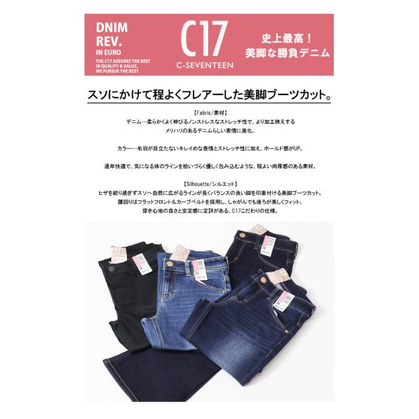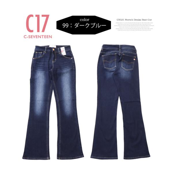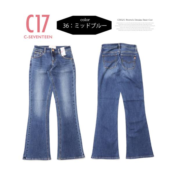 C17 C-SEVENTEEN CB321 ベーシック ブーツカット フレアー デニム ジーンズ ストレッチ シーセブンティーン 送料無料 レディース