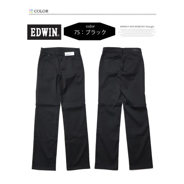 EDWIN エドウィン レディース ハタラクロ ストレート パンツ ストレッチ ボトムス 仕事着 作業着 送料無料 ミスエドウィン MEB013-75 ブラック 黒