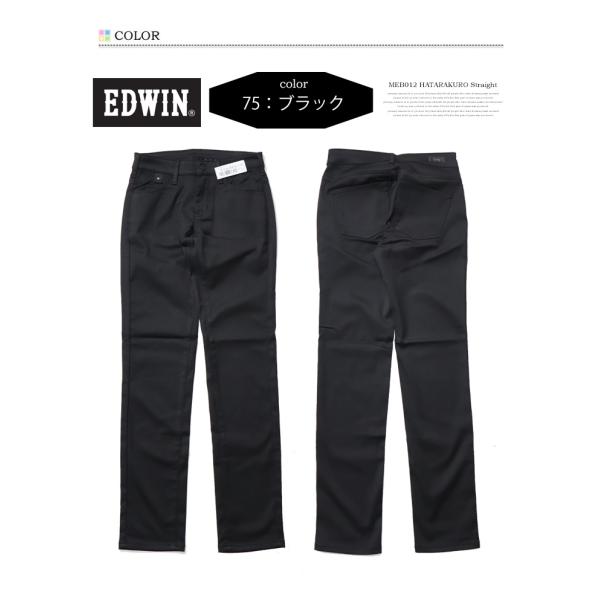 EDWIN エドウィン レディース ハタラクロ スリムストレート パンツ ストレッチ ボトムス 仕事着 作業着 送料無料 ミスエドウィン MEB012-75 ブラック 黒