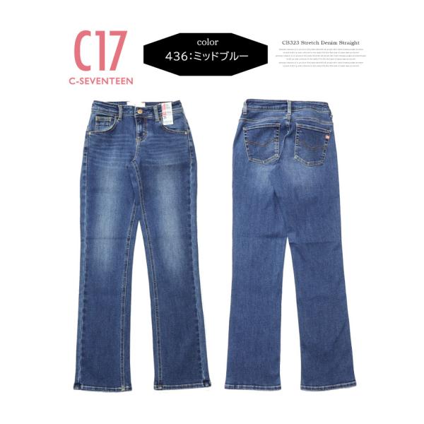 大きいサイズ C17 C-SEVENTEEN レディース CR424 ストレート デニム ジーンズ ストレッチ パンツ シーセブンティーン C-17 送料無料