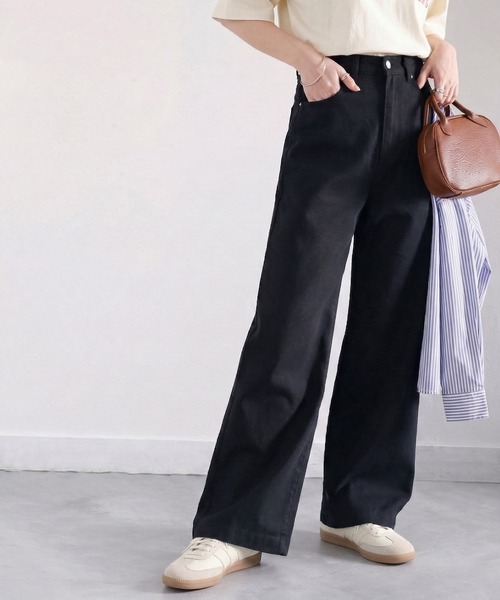 ジーンズ デニム デニムパンツ 「高身長・大きいサイズ対応/5サイズ展開」美脚見え×ラフさのいいとこ取り♪ハイウエスト ルーズ デニム パンツ