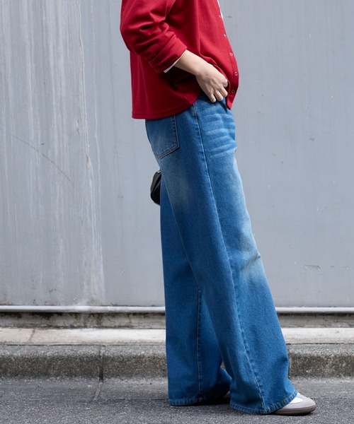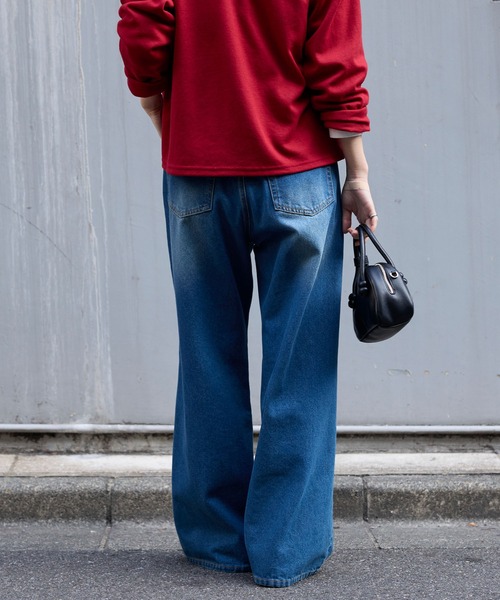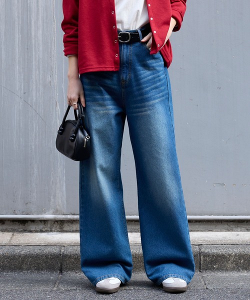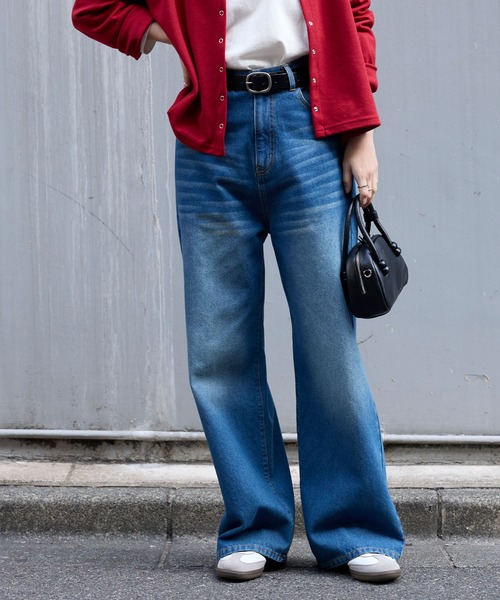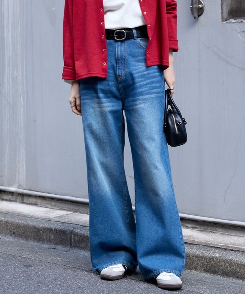 ジーンズ デニム デニムパンツ 「速乾・ウォッシャブル」ヴィンテージライク ハイウエストルーズデニムパンツ レディース
