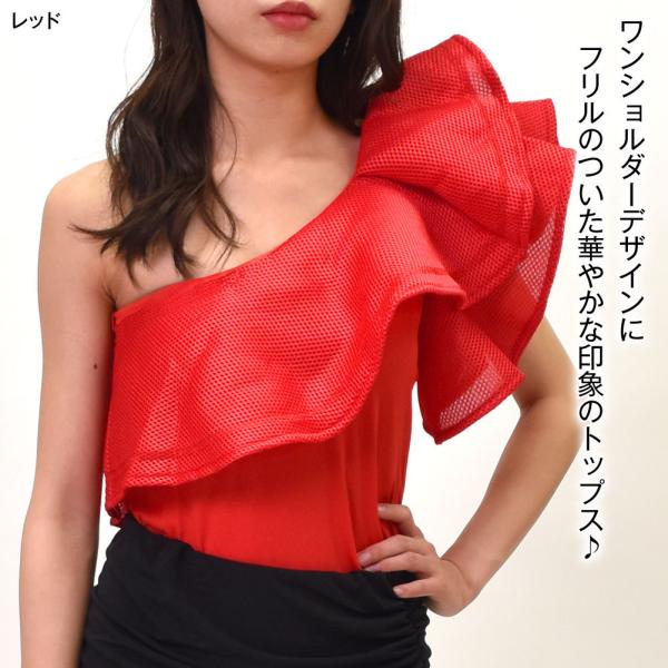 ダンストップス メッシュフリルレオタード ワンショルダートップス ワンショル レオタード 社交ダンス衣装 フラメンコ衣装 ステージ衣装 BC110F5 [M便 2/3]