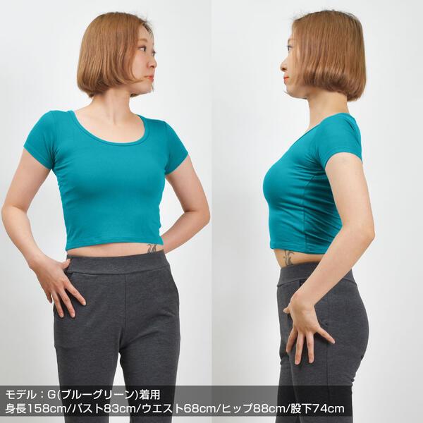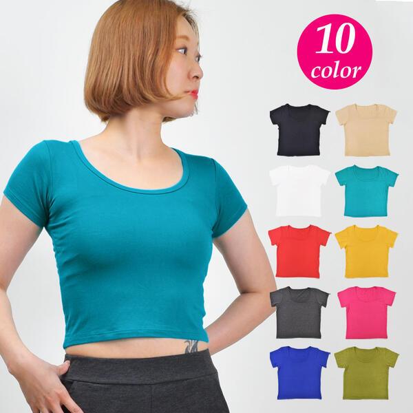 ダンス 衣装 トップス ショート丈Tシャツ Uネック ベーシック へそ出し レディース レーヨン 伸縮素材 半袖 無地 ラウンドネック ヨガウェア T80714 [M便 1/3]