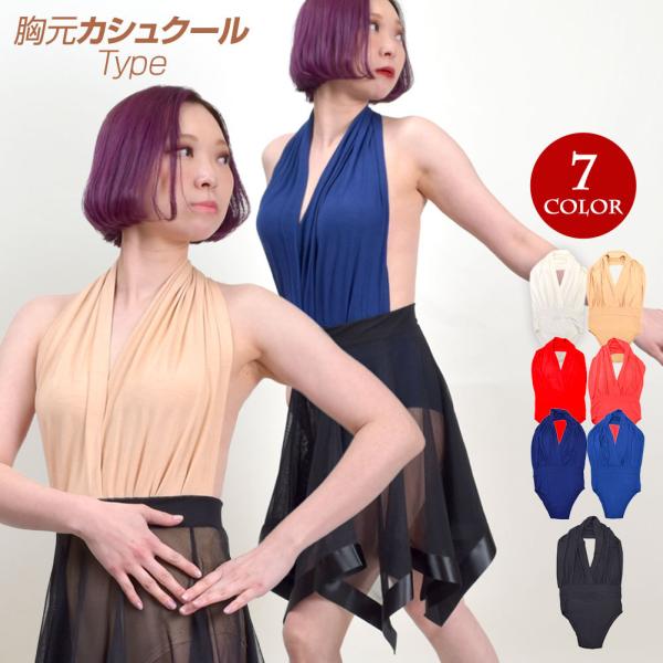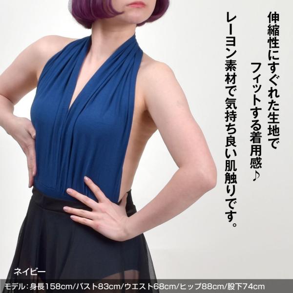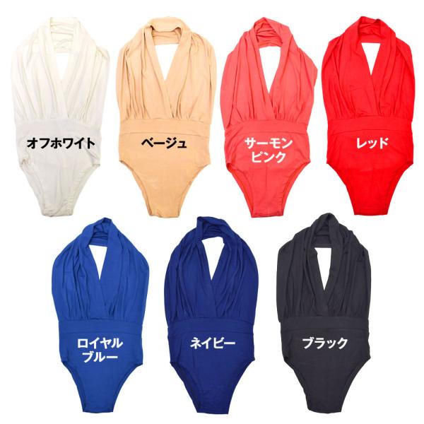 レオタード 無地 ボディスーツ ダンストップス コスチューム インナー カップ無し シンプル レーヨン 伸縮素材 ホルターネック ノースリーブ T92502 [M便 1/2]