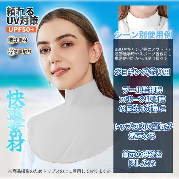 冷感 つけ襟 2枚組 接触冷感 ハイネック 夏用 日焼け対策 UVカット 日焼け 紫外線 ネックカバー レディース トップス 重ね着風 タートルネック シャツ 2-RETUKE