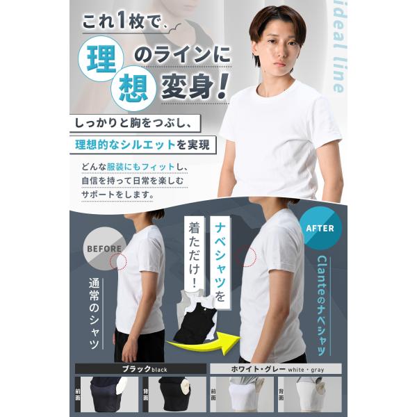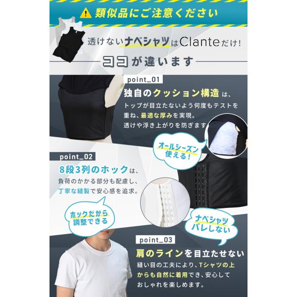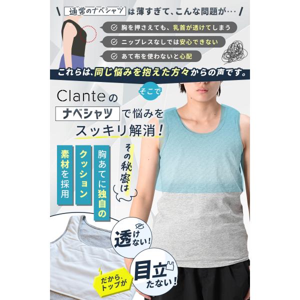 Clante ナベシャツ トップが浮かない設計 胸つぶし タンクトップ インナー コスプレ 男装 大きい 小さい サイズ ホック式 胸潰し 爆買