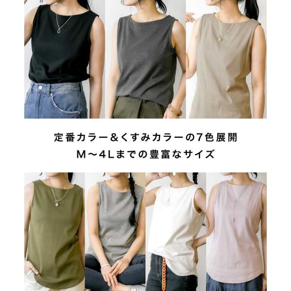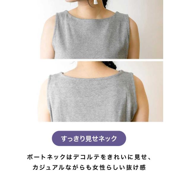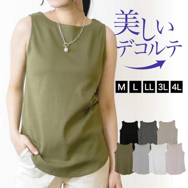 ボートネック タンクトップ レディース ノースリーブ インナー 綿100 美しいデコルテライン。 トップス 大きいサイズ ゆったり 袖なし レイヤード 重ね着 春 夏