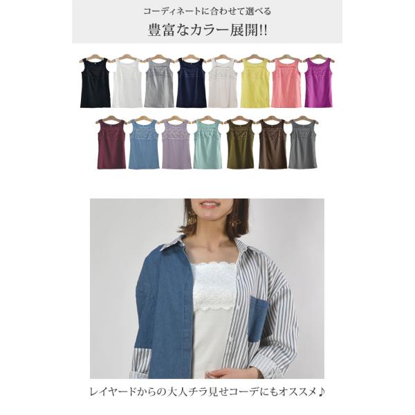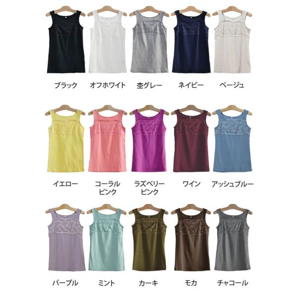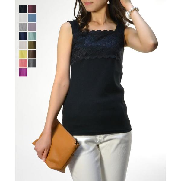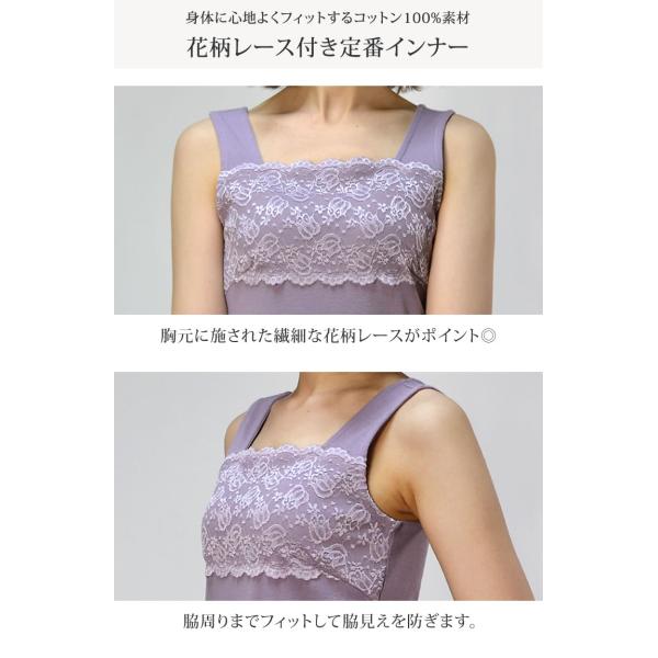 【送料無料】フロントフラワーレースコットンタンクトップ レース レディース インナー トップス 綿 コットン 花柄 スクエアネック