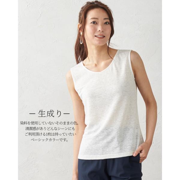 タンクトップ レディース インナー チラ見え防止 ブラ紐隠す リネン 麻 リネン100 日本製 大きいサイズ ボーダー
