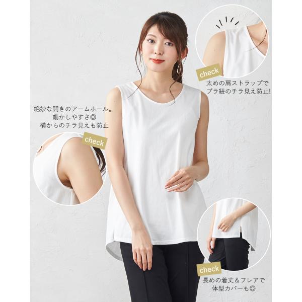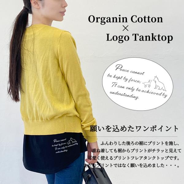 タンクトップ レディース インナー ノースリーブ チュニック チラ見え防止 ブラ紐隠す 綿 日本製 オーガニックコットン ロゴ