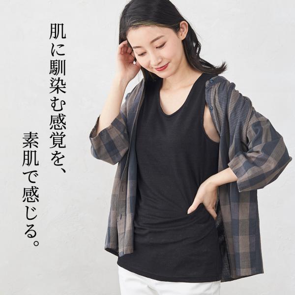 タンクトップ レディース インナー カップ付き ブラトップ ブラタンクトップ リネン 麻 日本製