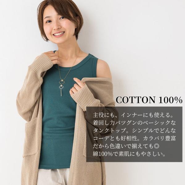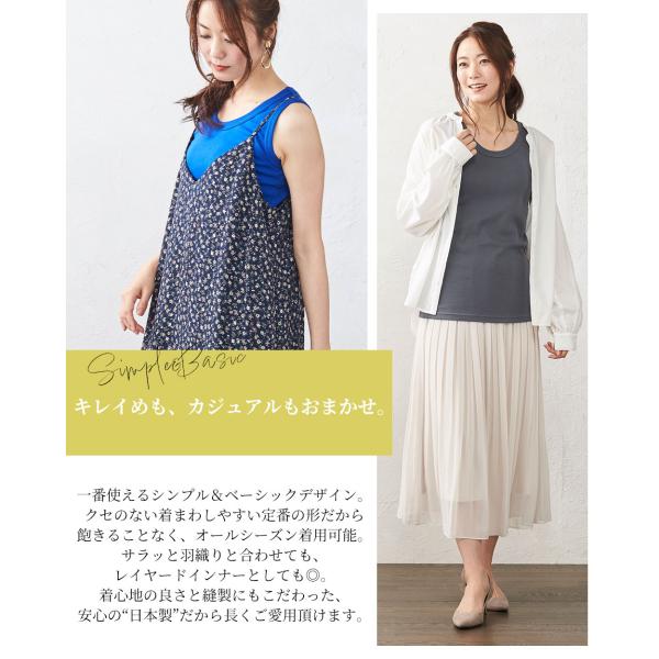 タンクトップ レディース インナー リブ チラ見え防止 ブラ紐隠す コットン 綿 日本製