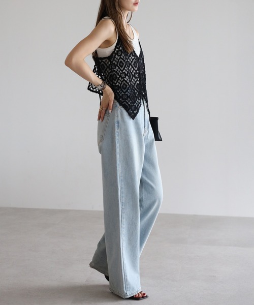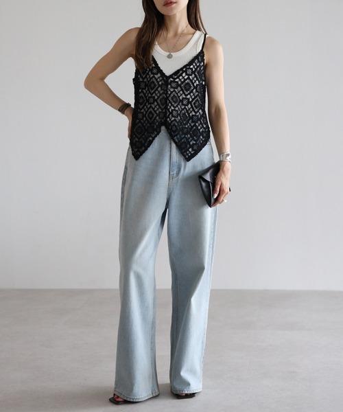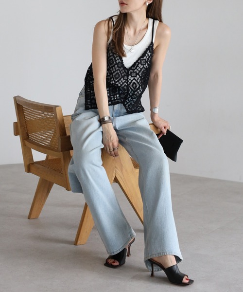 キャミソール かぎ編みレースキャミビスチェ