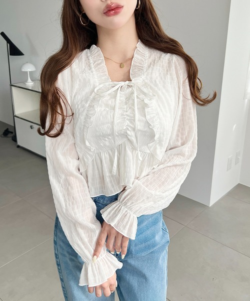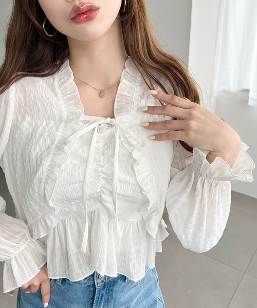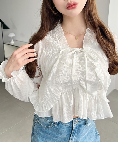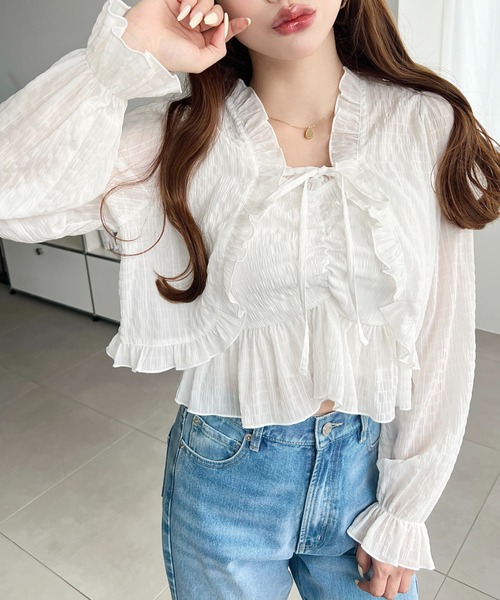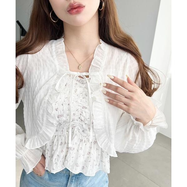 アンサンブル シアースモッキングライクフロントシャーリングキャミ+フリルリボンボレロ セット