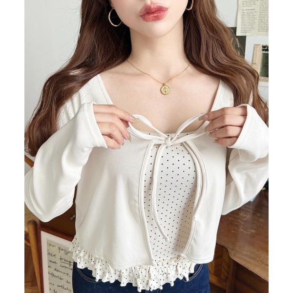 アンサンブル フロントリボンカーディガン+ドットフリルキャミアンサンブル