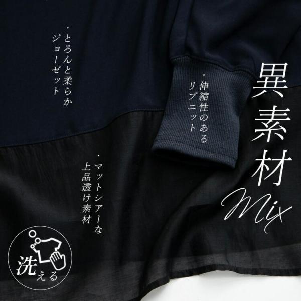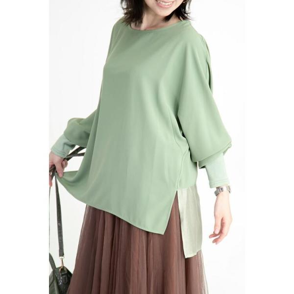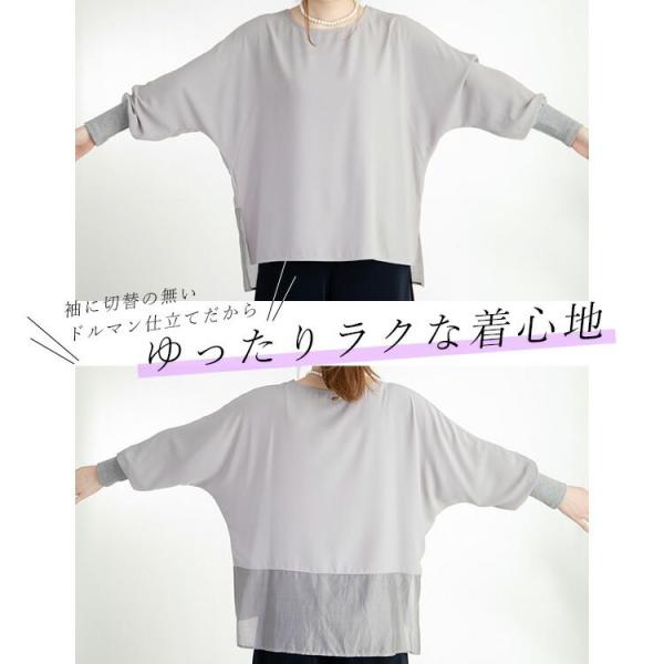 【送料無料】 とろ艶ドルマンチュニック 3色 M L 洗える レディース トップス チュニック ブラウス カットソー 布帛 異素材