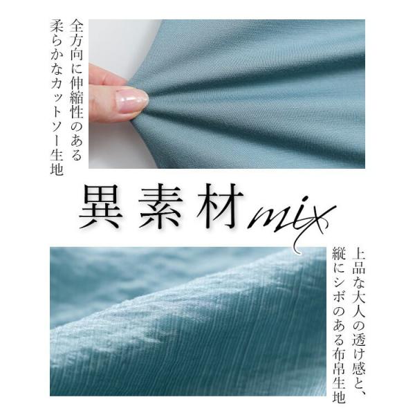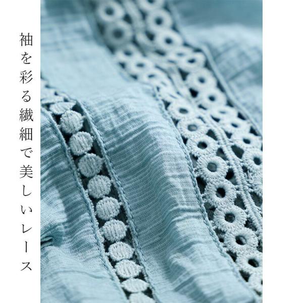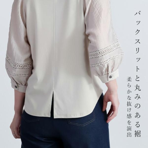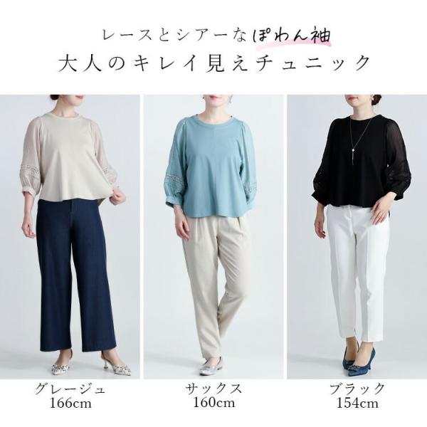 【送料無料】 レース使いぽわん袖チュニック 3色 M L 洗える 7分袖 レディース トップス チュニック カットソー ぽわん袖 異素材 レース 春夏秋