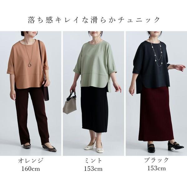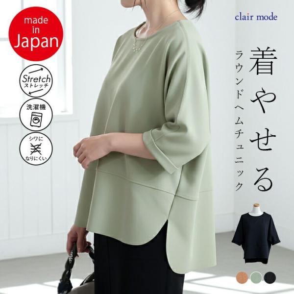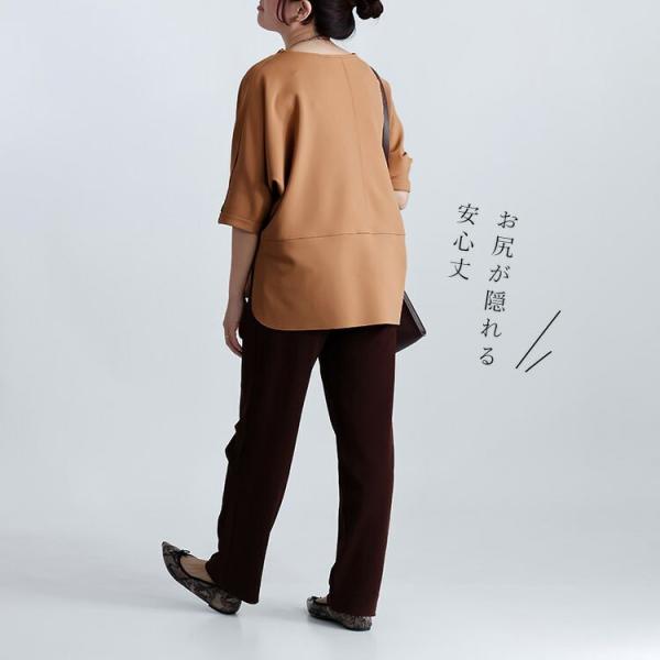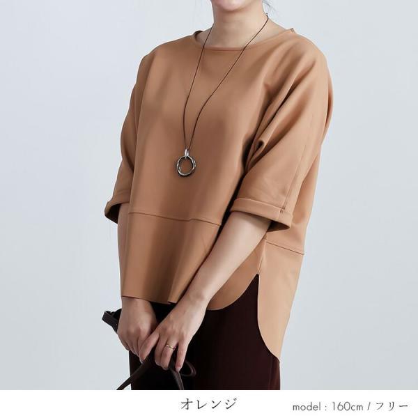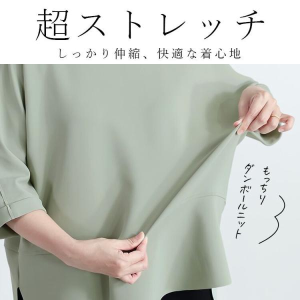 【送料無料/日本製】ドルマンプルオーバー 3色 M-L 6分袖 洗える レディース トップス チュニック ダンボールニット ストレッチ 楽ちん 体型カバー 春秋