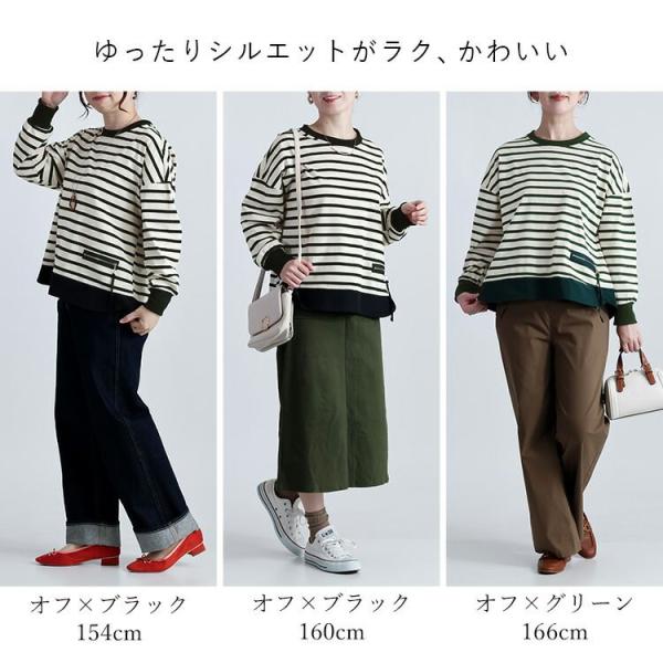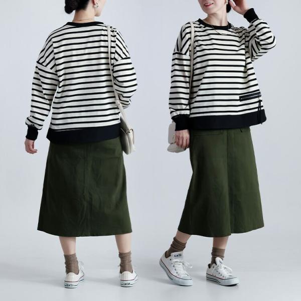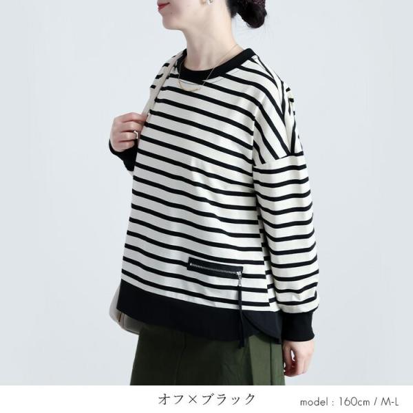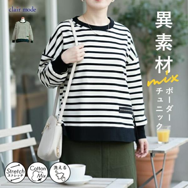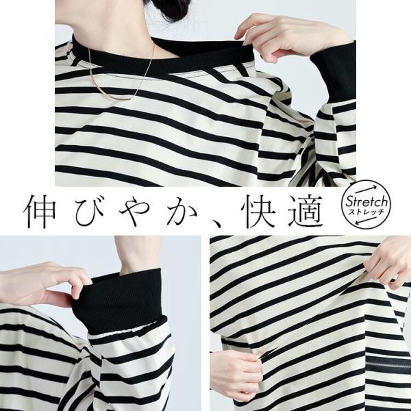 【準新作/送料無料】 ボーダープルオーバー 2色 M-L 洗える 長袖 レディース トップス カットソー プルオーバー チュニック ストレッチ クルーネック 春秋
