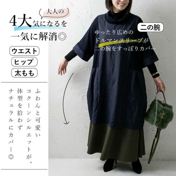 【再入荷】【送料無料】 ゆったり綺麗な大人のロングチュニック 5色 M-L 洗える レディース トップス チュニック 5分袖