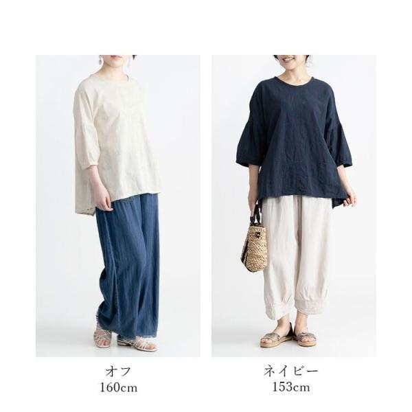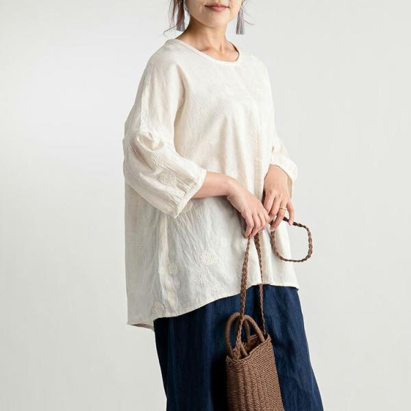 【送料無料/再入荷】 綿麻ドット刺繍ブラウス 2色 M L 洗える 七分袖 レディース トップス ブラウス チュニック 大人 ナチュラル コットン 綿麻 刺繍 春夏 3888