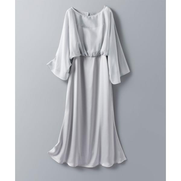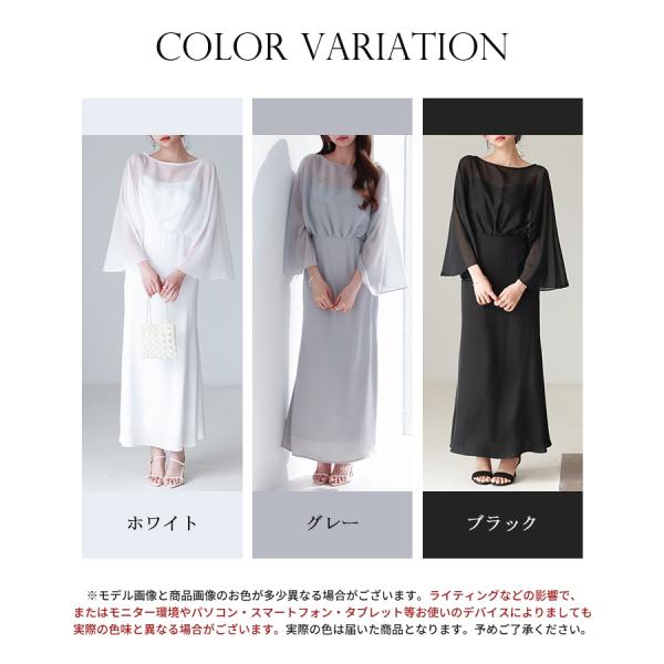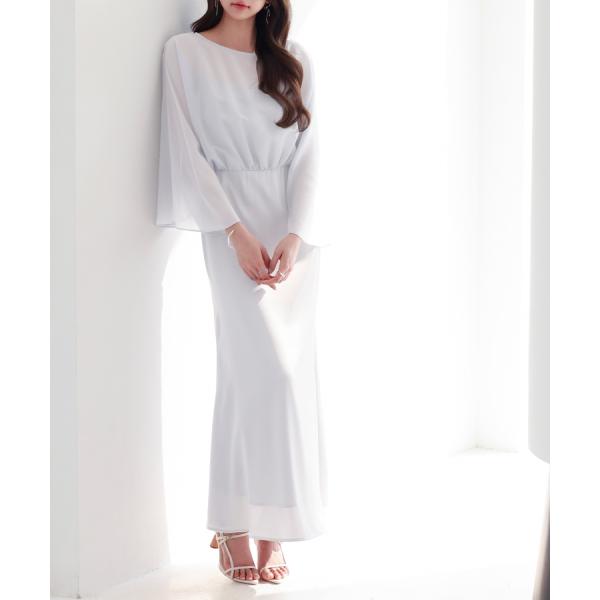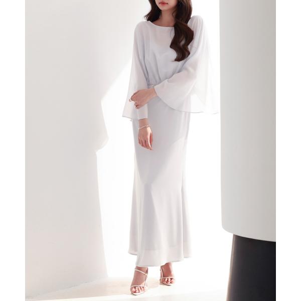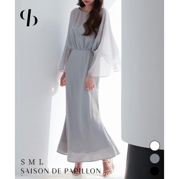 ワンピース ドレス キャミソールワンピース ロングワンピース キャミワンピ 袖付き フレアスリーブ 裏地付き バックファスナー シフォン サテン ロン