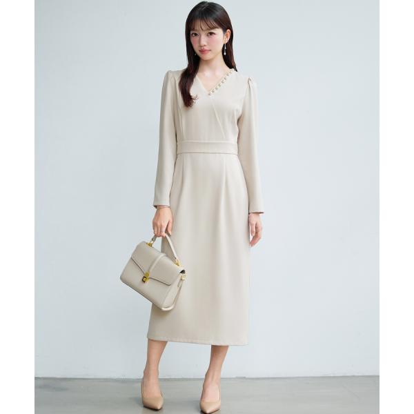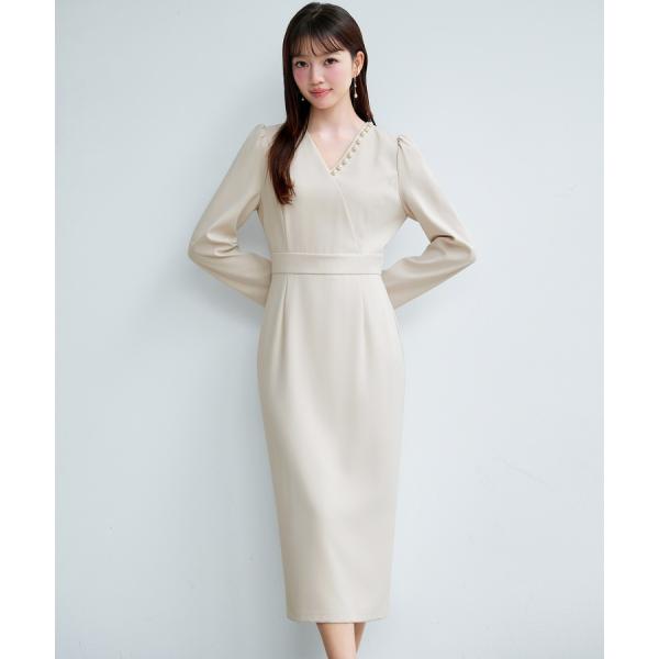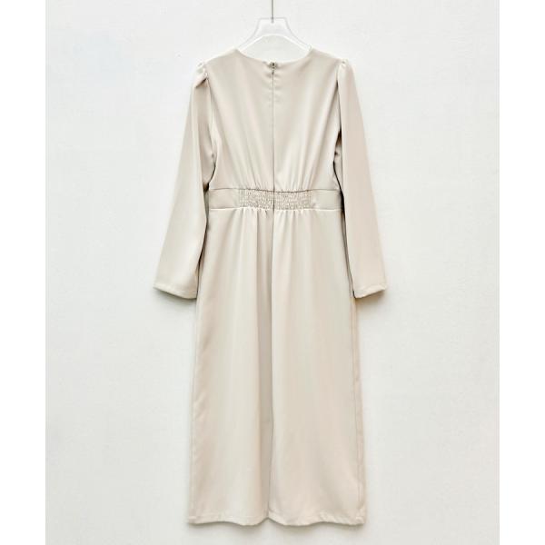 ワンピース ワンピ ロングワンピース カシュクールワンピース 長袖 ギャザースリーブ Vネック 裏地付き バックゴム ウエストマーク ウエスト切り替え