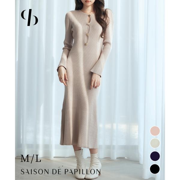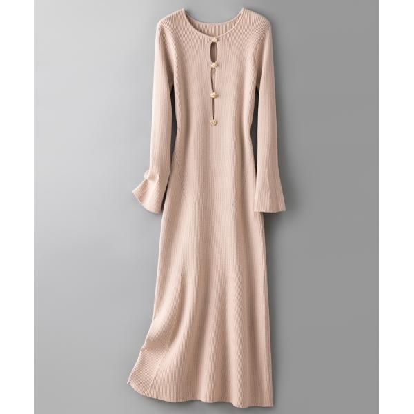 ワンピース ニットワンピース レディース タイトワンピース 長袖 タイト ニット リブニット ペンシル ミモレ丈 クルーネック 涙開き フロントボタン