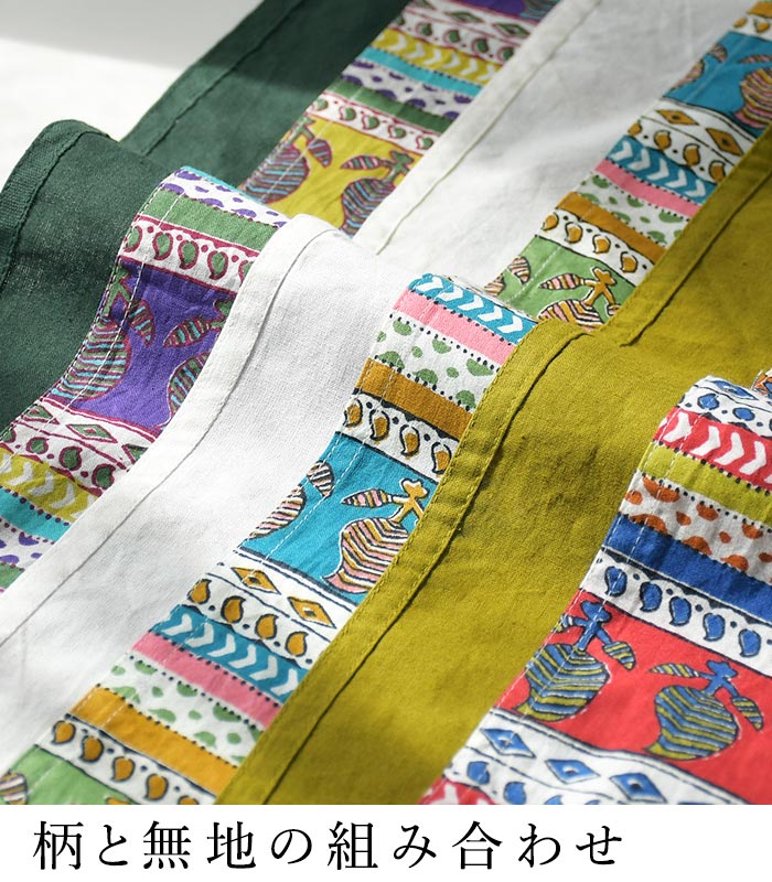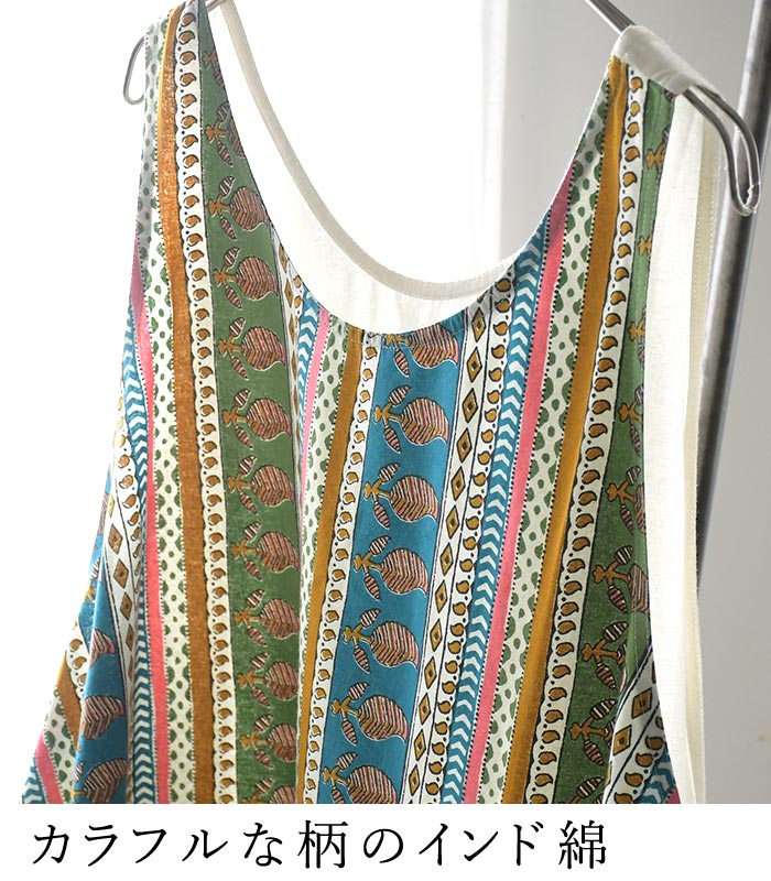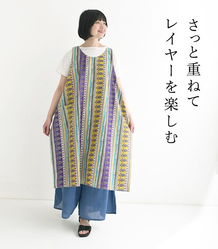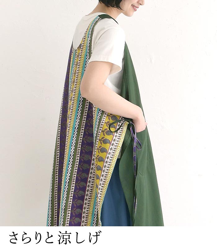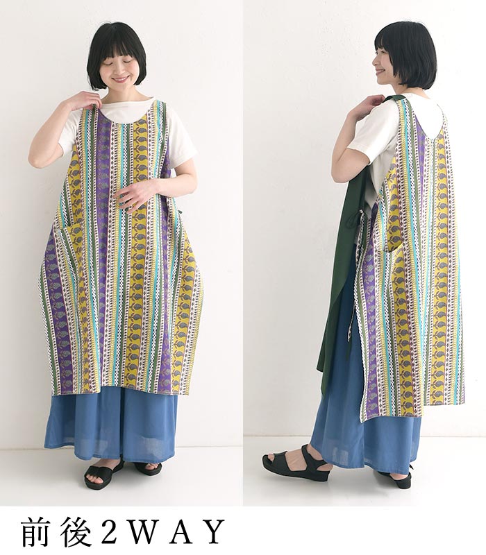メール便可 エプロンチュニック パネル柄 ジレ レディース ワンピース ロング インド綿 前後着 2WAY 春夏 26SS0403,