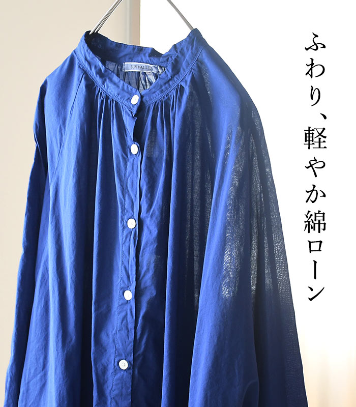 チュニックブラウス 綿100% SUN VALLEY コットンローン日本製品染 9分袖 ロングシャツ 春 夏 30代 40代 50代 26SS0319,