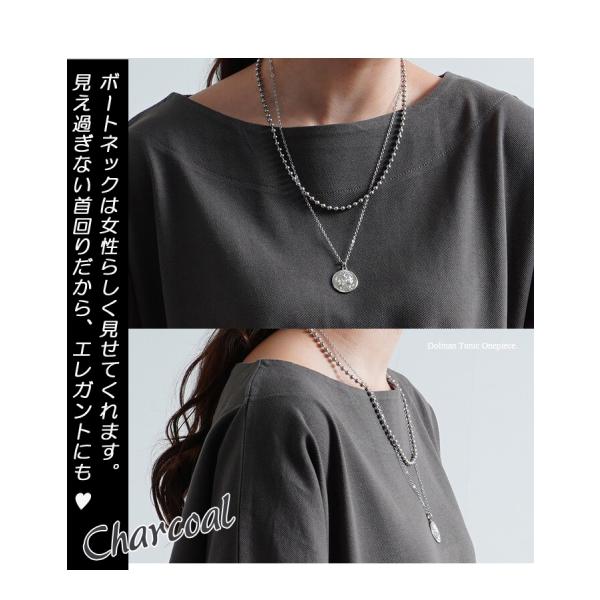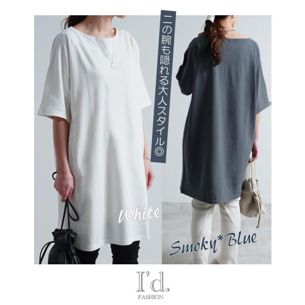 立体裁断 綿100% 二の腕ゆったり〜 ドルマン ポケット付 チュニック ワンピース 半袖 カノコ 丸首 無地 ゆる ワイド 春秋兼用 ドルマンスリーブ 5310